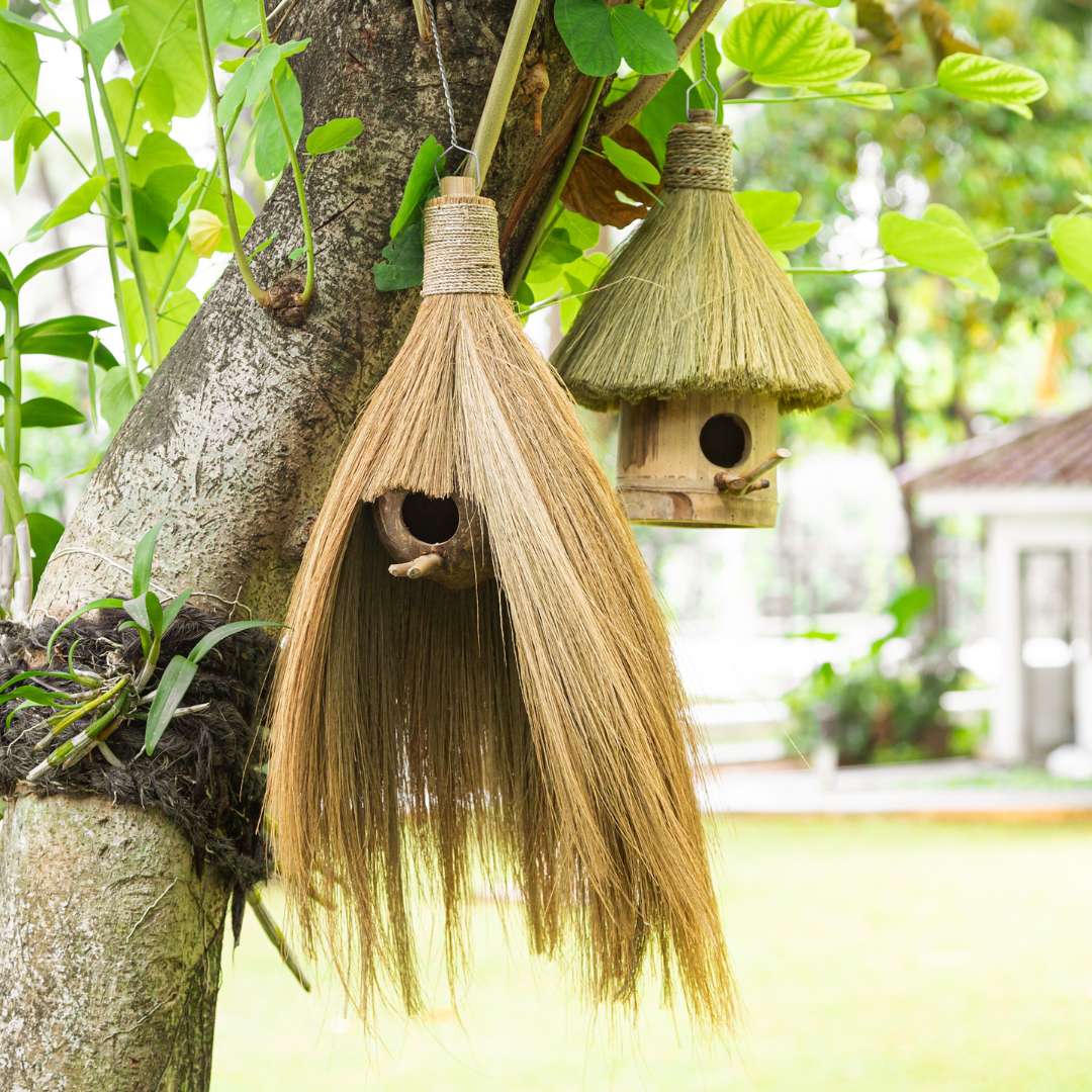 A handmade birdhouse with a rustic, traditional charm and an Indonesian touch. A cozy, beautifully crafted haven for birds in any outdoor space.