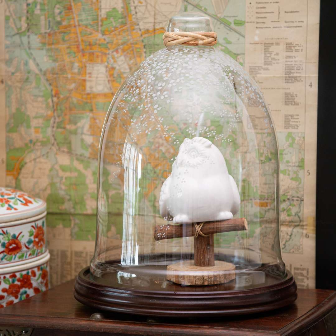 Engraved glass cloche with a sturdy base—perfect for displaying your favorite pieces, from keepsakes to decorative finds.